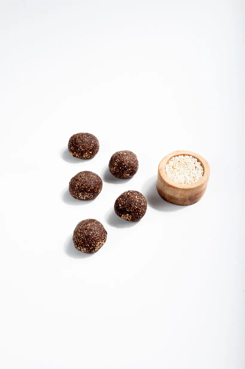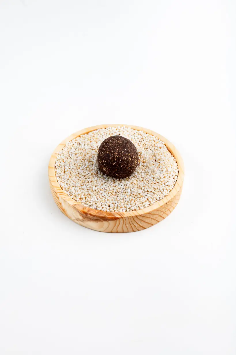 Alegría de amaranto con cacao lavado al 70% con almendra y endulzado con piloncillo. Peso 14 gramos.